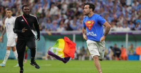 O adepto que interrompeu o jogo entre Portugal e Uruguai, com uma bandeira do arco-íris, de apoio à comunidade LGBTQ+, e uma t-shirt de apoio à Ucrânia e às mulheres do Irão, foi banido do Mundial2022 de futebol.