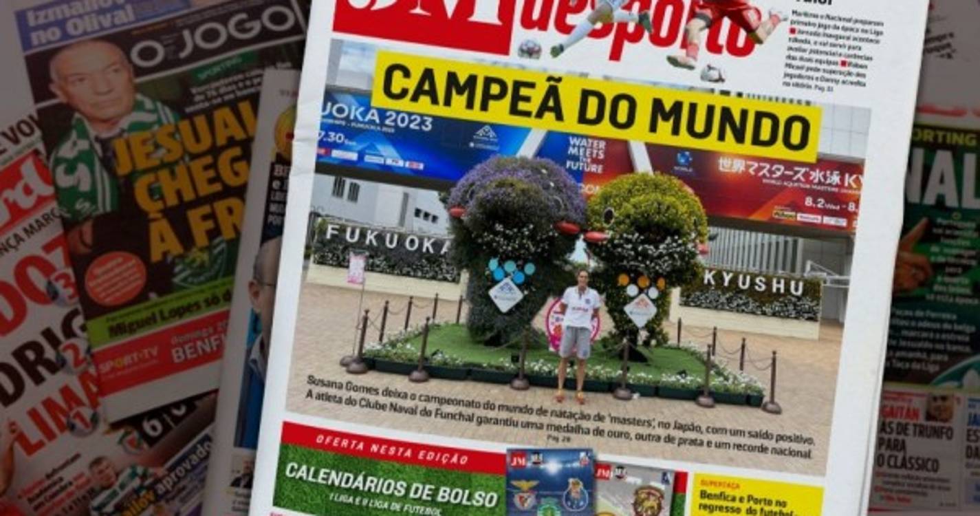 O assunto que faz manchete desportiva do seu Jornal de hoje está relacionado com o campeonato do mundo de natação de 'masters', no Japão, com um saldo positivo. A atleta do Clube Naval do Funchal garantiu uma medalha de ouro, outra de prata e um recorde nacional.