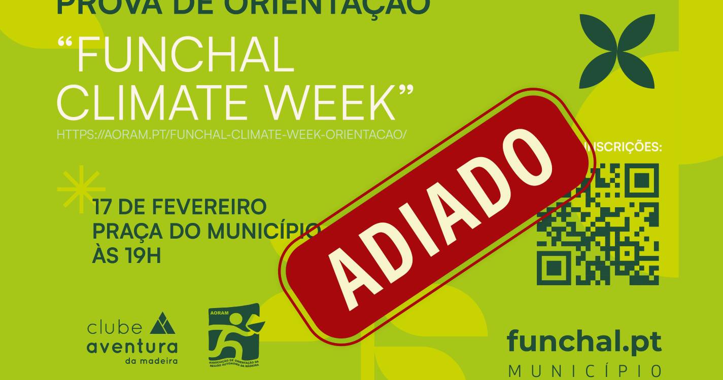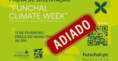 A Câmara Municipal do Funchal, atendendo às condições meteorológicas, previstas para esta segunda-feira ao fim da tarde, informa, em comunicado, que a prova de orientação no âmbito do Funchal Climate Week, que estava agendada para hoje, às 19h00, fica reagendada para o próximo sábado, dia 22 de fevereiro, às 18h.