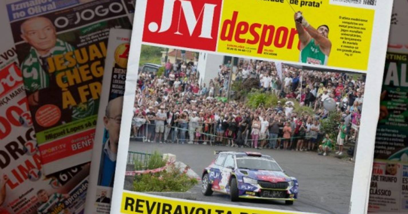 José Pedro Fontes lidera o campeonato nacional, João Silva segue nas frente nas duas rodas motrizes. O Publico comparece em massa às classificativas. Dia decisivo contempla oito classificativas. Este o resumo do segundo dia de Rali e que pode ser lido no seu espaço desportivo do JM de hoje. Faz, naturalmente, manchete da capa desportiva, que ainda conta com uma chamada para o Atletismo, onde Décio Andrade, atleta madeirense, conquistou um metal precioso nos jogos mundiais universitários, no lançamento do martelo e mostra-se em grande plano.