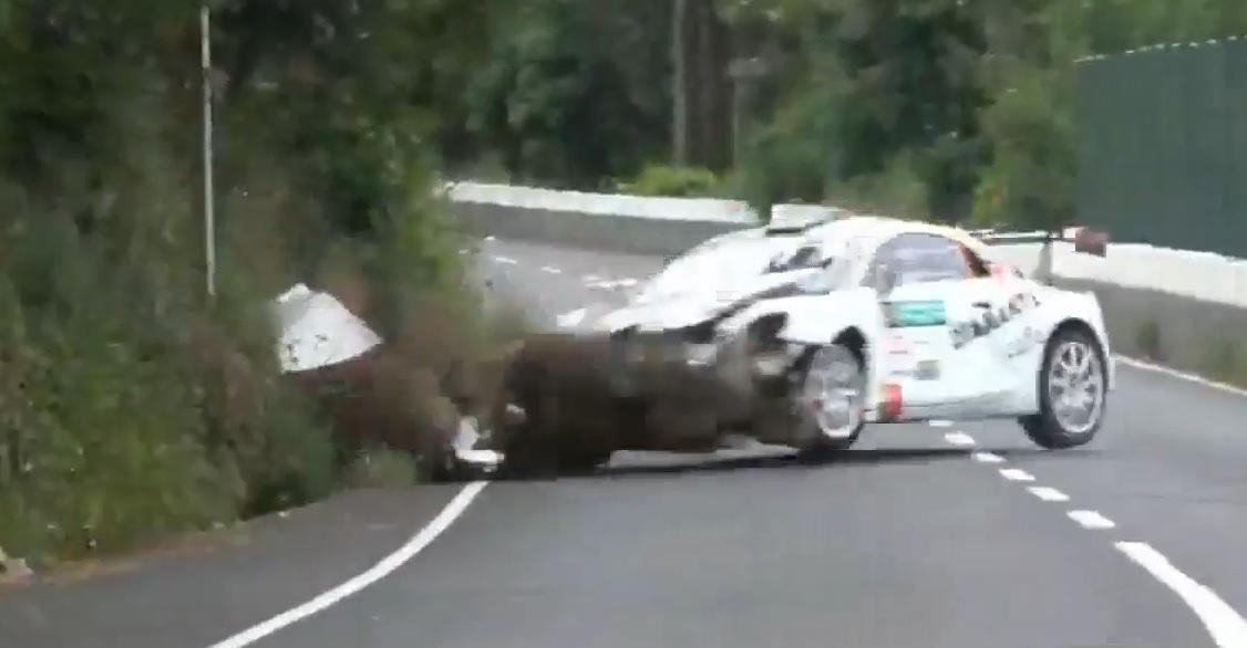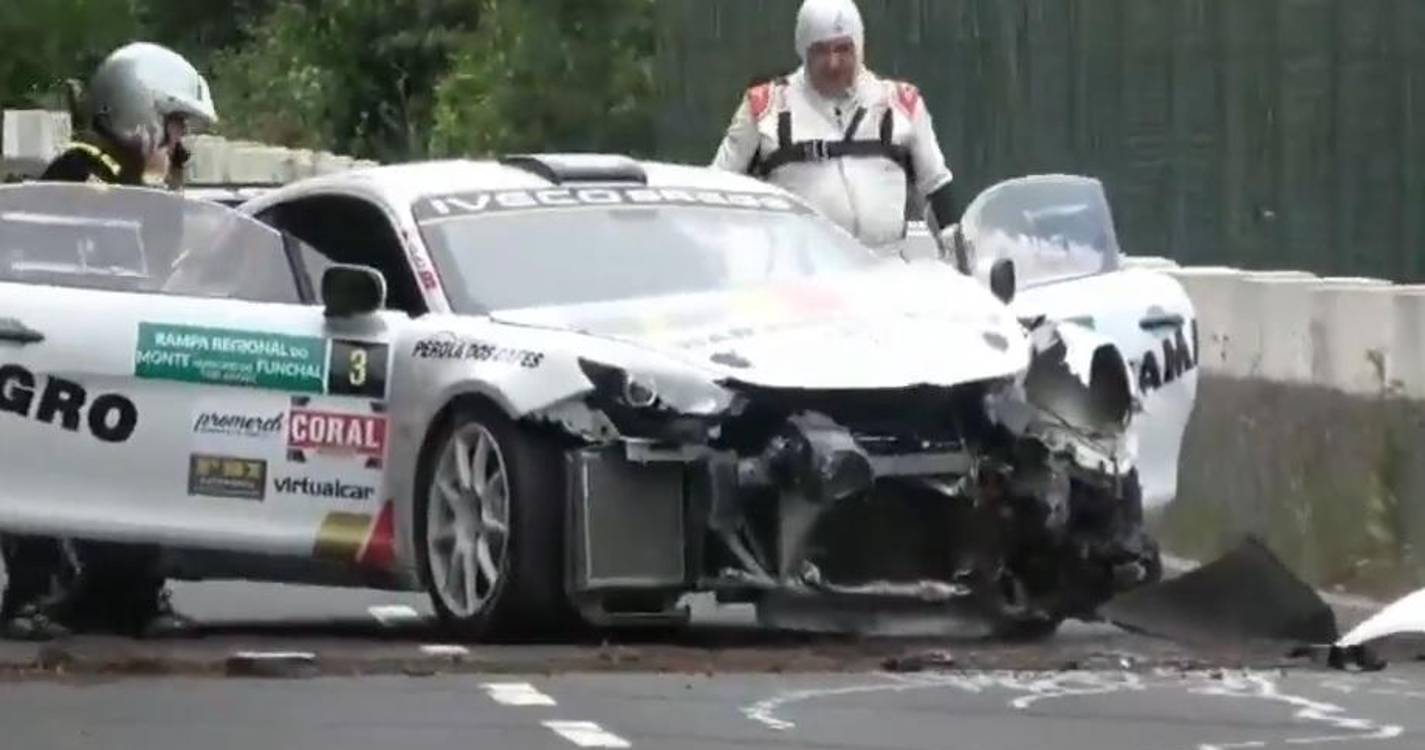 O acidente foi registado na quarta e última subida, tendo a viatura ficado atravessada na faixa de rodagem, bem como destroços e óleos que se espalharam em consequência do impacto.