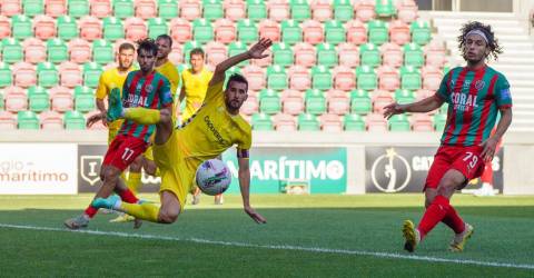 O Nacional joga com menos um, por expulsão de João Aurélio, desde o minuto 36.