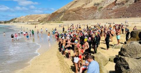 Rodrigo Rodrigues e Daniela Lopes, ambos nadadores do CD São Roque, venceram hoje a prova de 2500 metros do Porto Santo Madeira Ultra Swim.