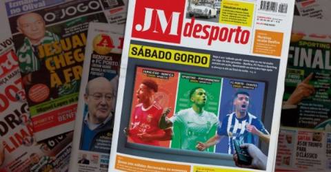 Hoje é um ‘sábado gordo’ como não se via há muito na Liga. Os três grandes - Benfica, FC Porto e Sporting, entram em ação, dominando as atenções logo após o almoço e até ao final da noite. Este é o tema que faz a manchete do suplemento desportivo do JM.
