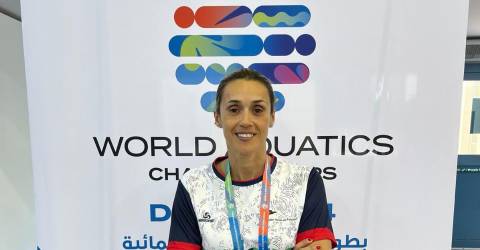 A atleta madeirense está a competir no Campeonato do Mundo Aquático de Masters em Qatar, Doha, na categoria de 45-49 anos.