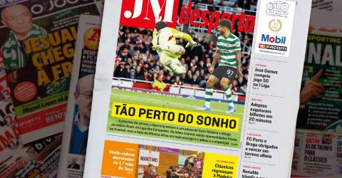 ‘Tão perto do sonho’ é a manchete desportivo do JM desta quinta-feira, 15 de abril de 2026. O título remete para o empate de ontem do Sporting na casa do Arsenal.