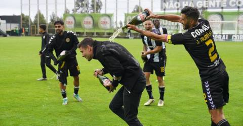 Em festa, o treinador pegou no microfone e pediu a ajuda de todos para um cântico, respondendo depois à questão sobre a sua continuidade, confirmando que vai ficar a orientar a equipa.