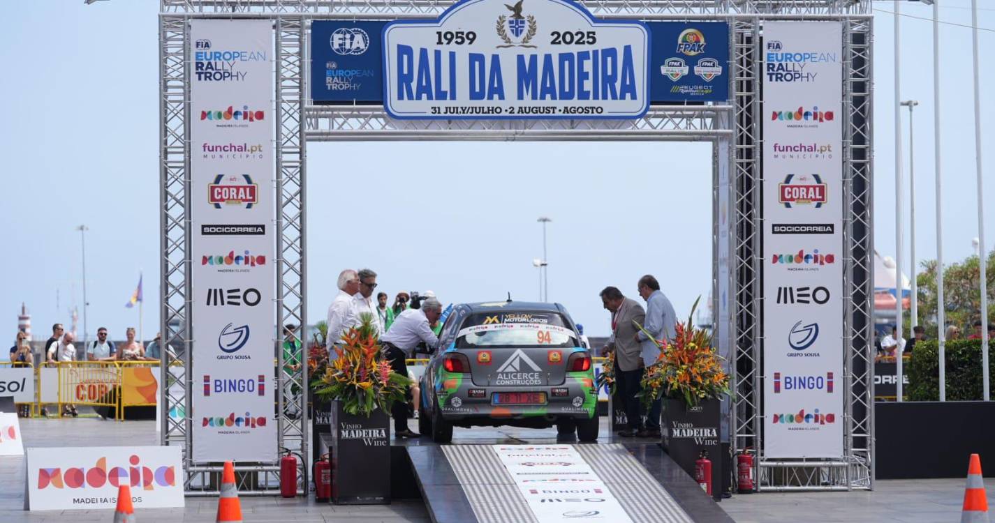 A cerimónia de ‘partida simbólica’ do Rali da Madeira 2025 está a decorrer no pódio montado na Praça do Povo, na frente mar da cidade do Funchal.