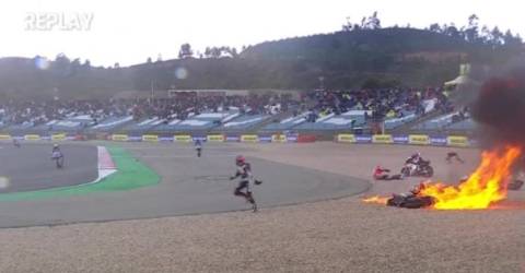 Um violento acidente interrompeu, esta tarde, a prova de Moto2 no Grande Prémio de Portugal do Mundial.