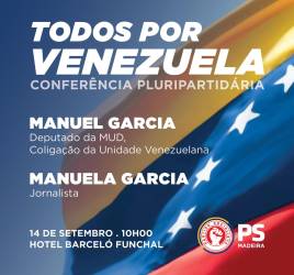 O PS-Madeira promove uma conferência pluripartidária, intitulada ‘Todos Por Venezuela’, que contará com a presença de Manuel Garcia, Deputado da MUD, Coligação da Unidade Venezuelana, e a jornalista Manuela Garcia.