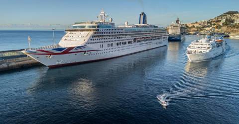 O Porto do Funchal encontra-se hoje bem composto, com os navios de cruzeiro ‘Aurora’ e ‘Mein Schiff 3’ atracados, a par de dois veleiros no cais norte: ‘Sorlandet’ e ‘Christian Radich’.