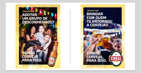 De acordo com comunicado da empresa, a campanha celebra o espírito dos arraiais, onde todos se encontram para brindar, conviver e criar momentos inesquecíveis — sempre com uma Coral na mão.