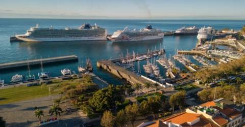 O Porto do Funchal recebe hoje, nesta manhã primaveril, quatro navios de cruzeiro perfazendo um cenário de casa cheia e muito movimento turístico pelas ruas da capital madeirense.