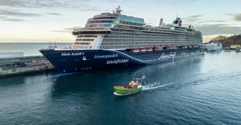 O Mein Schiff 7 posicionou-se este mês, nas Canárias, operando cruzeiros semanais para as ilhas atlânticas e Marrocos. Vai ser uma presença regular no Porto do Funchal nesta temporada.