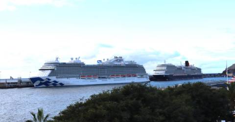 O ‘Queen Anne’ e o ‘Sky Princess’ trouxeram ao Porto do Funchal, onde estão atracados, um total de 8.699 pessoas, das quais 6.144 são passageiros.