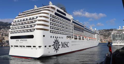 O navio MSC Poesia chegou esta segunda-feira ao Porto do Funchal para uma escala de sete horas e um turnaround que envolve 313 desembarques e 304 embarques.