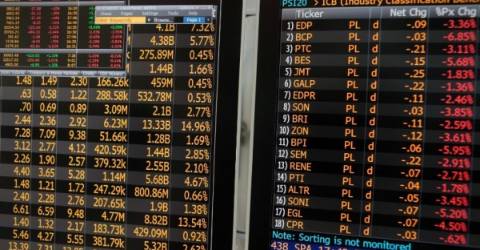 Nas subidas, a Sonae SGPS liderou com um ganho de 3,35% para 0,88 euros e o banco BCP também se destacou ao somar 2,97% para 0,13 euros.