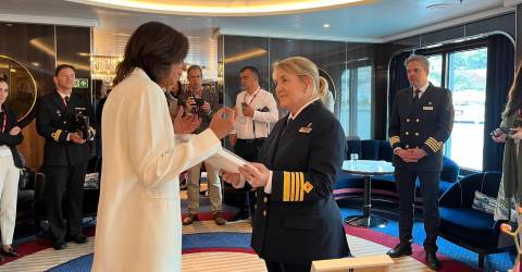 Está cumprida a habitual cerimónia de troca de placas a bordo do estreante ‘Queen Anne’, o número 249 da frota da Cunard e o mais recente.