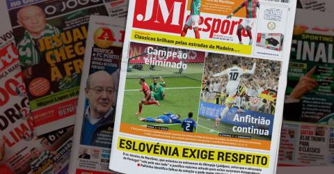 Esta a manchete do Jornal deste domingo. A capa desportiva dá ainda grande destaque aos jogos entre a Suiça e a Itália e a Alemanha e Dinamarca. A Suíça protagonizou a primeira grande surpresa dos oitavos de final do Europeu de futebol, ao eliminar, de forma convincente, a Itália, campeã em título. Já o conjunto germânico ultrapassou a muralha dinamarquesa. Foram estes os resultados: Suiça 2- 0 Itália e Alemanha 2-0 Dinamarca.