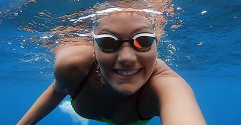 Missão cumprida e com menos tempo que o estimado. Mayra Santos tornou-se hoje o primeiro ser humano a dar a volta à ilha do Porto Santo a nado.