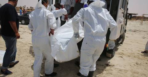 Imagens da guarda costeira integrada na Guarda Nacional mostravam pessoas exaustas, por vezes a transportar boias negras, incluindo mulheres e crianças, algumas das quais parecem mortas.