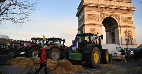 Os agricultores chegaram de trator ao Arco do Triunfo, local de homenagem aos soldados mortos em combate e localizado na famosa avenida de Campos Elísios, por volta das 06:00, no horário local (05:00 em Lisboa) e interromperam brevemente o trânsito, segundo a polícia.