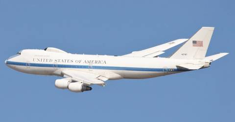 O E-4, uma versão altamente modificada do Boeing 747, serve como centro de operações aéreas para o Presidente, o secretário da Defesa e o Estado-Maior Conjunto das Forças Armadas, num cenário de emergência bélica que inclui ataques nucleares.