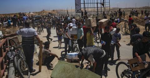 No centro da Faixa de Gaza, um vídeo da Associated Press mostra bombas de fumo a ser disparadas em um centro de distribuição, com disparos audíveis e um carro de combate israelita nas redondezas.