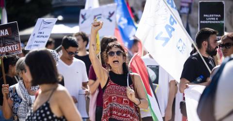 Centenas de pessoas manifestaram-se hoje em Lisboa por um cessar-fogo na Faixa de Gaza e pelo reconhecimento por Portugal do Estado da Palestina, sem esperanças no encontro de segunda-feira entre Donald Trump e Benjamin Netanyahu.