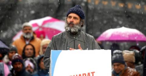 Entre medidas de segurança inéditas e uma forte nevasca que caiu sobre Srinagar, o dirigente do CNI Rahul Gandhi encerrou a marcha - que realizou com outros políticos e simpatizantes - num comício em que compareceu com o tradicional 'Pheran', traje tradicional desta região de maioria muçulmana no norte do país.