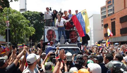 Maria Corina Machado, que declarou temer pela sua vida, chegou à manifestação transportada por um camião, acompanhada de dirigentes de partidos da oposição que compõem a maior coligação anti-regime: a Plataforma Unitária Democrática (PUD).