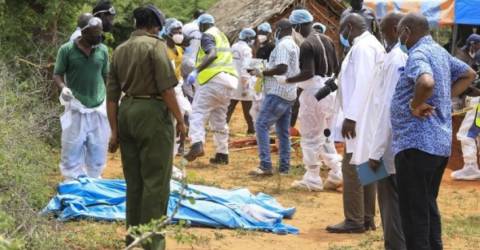 Os corpos exumados na zona de Shakahola, no subcondado de Malindi, no condado de Kilifi, mostram sinais de estrangulamento e de subnutrição, pois, alegadamente, o líder do culto denominado de Igreja Internacional da Boa Nova, Paul Mackenzie, pediu aos seus seguidores que jejuassem até à morte para “se encontrarem com Jesus”.