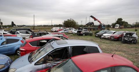 Segundo as estimativas das associações e empresas de remoção de carros que estão no terreno a trabalhar em coordenação com os militares e polícias, ficaram danificados e destruídos mais de 100 mil veículos.