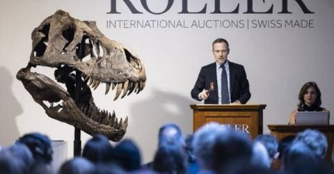 Feito numa pose de boca aberta, o esqueleto do T. rex, com 11,6 metros de comprimento e 3,9 metros de altura, foi vendido por 4,8 milhões de francos suícos na casa de leilões Koller em Zurique, ficando abaixo dos 5 milhões a 8 milhões de francos esperados para o negócio.