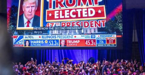 Quando ainda decorre o apuramento dos resultados, e segundo as projeções conhecidas, o republicano já ultrapassou os 270 votos necessários no Colégio Eleitoral para regressar à Casa Branca (presidência dos EUA).