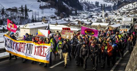 Segundo aquele comunicado, apenas 300 pessoas, no máximo, estão autorizadas a participar no comício de domingo: “É inadmissível que fascistas e belicistas possam circular livremente no WEF, enquanto a nossa contramanifestação é censurada”, afirma no texto a presidente da Juventude Socialista Suíça, Mirjam Hostetmann.