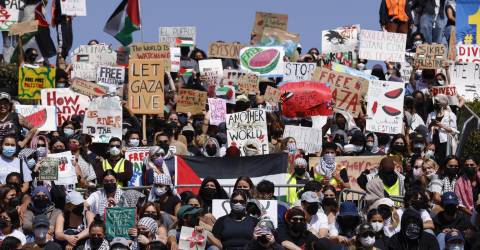Pelo menos 15 manifestantes pró-palestinianos ficaram feridos e a reação considerada “ineficaz” das autoridades policiais suscitou críticas por parte de líderes políticos da Califórnia.