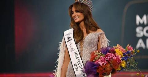 Mia Le Roux, 28 anos, nascida em Sasolburgo, na província de Free State, modelo e estudante de marketing, foi coroada, sábado, Miss África do Sul 2024, num glamoroso evento realizado na Arena Sun Bet, na cidade de Pretória, província de Gauteng.