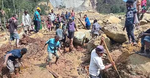 O deslizamento de terra ocorreu na madrugada de sexta-feira, por volta das 03:00 (15:00 de quinta-feira em Lisboa), na província da Enga, no centro do país, apanhando os moradores da aldeia de Kaokalam de surpresa, segundo as autoridades locais.