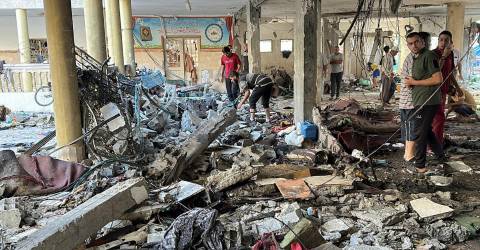 A Proteção Civil da Faixa de Gaza, controlada pelo movimento islamita palestiniano Hamas, disse hoje que um ataque lançado por Israel contra uma escola na cidade de Gaza matou pelo menos 90 pessoas.