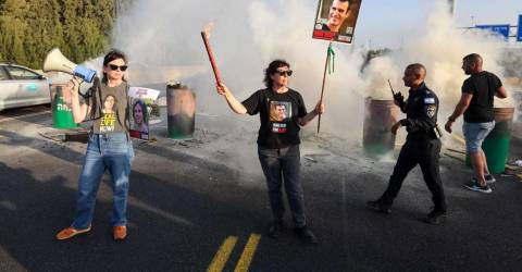 Cerca de 20 familiares dos 105 reféns do grupo islamita Hamas bloquearam hoje a autoestrada Ayalon, em Telavive, com cartazes para exigir do Governo israelita um acordo para a libertação dos sequestrados.