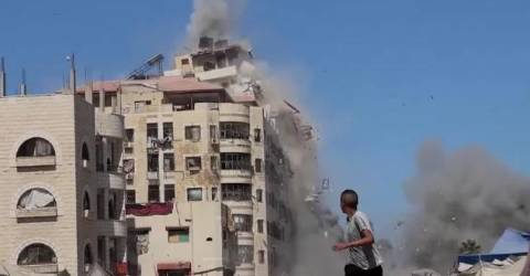 Os ataques derrubaram prédios em zonas densamente povoadas por acampamentos de tendas onde estão abrigados milhares de palestinianos. Israel afirma que estas torres estão a ser utilizadas pelo Hamas para vigiar as tropas.