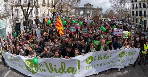 Milhares de pessoas participaram hoje em Madrid numa marcha em defesa dos “nascidos e por nascer”, sob o lema ‘Sim à vida”, organizada pela Plataforma Sim à Vida.