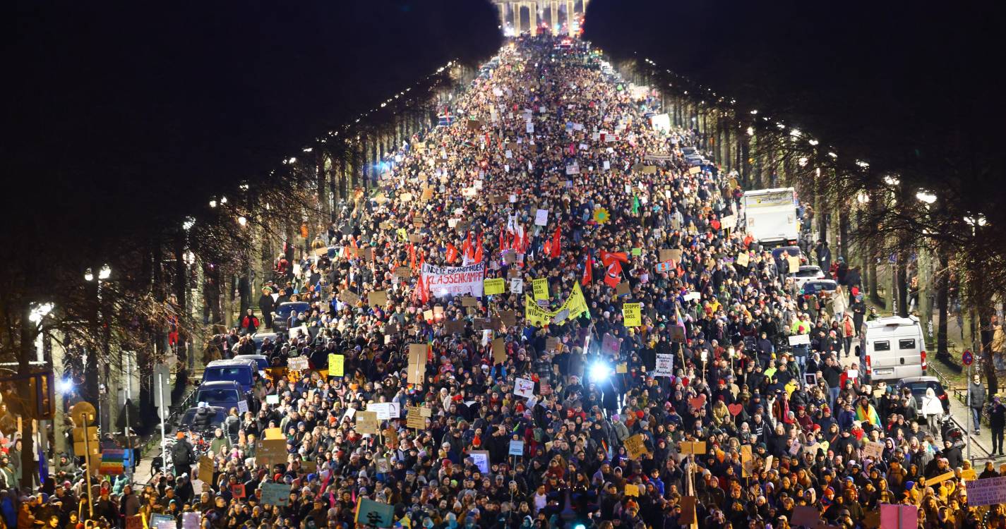 Milhares de pessoas juntaram-se hoje no centro político de Berlim para denunciar a aproximação iniciada esta semana entre a direita e a extrema-direita, a três semanas de eleições legislativas na Alemanha.
