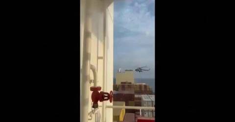 Segundo a AP, no vídeo veem-se militares a descer de um helicóptero e a tomar de assalto o navio de carga junto ao estreito de Ormuz (entre o golfo de Omã e o golfo Pérsico).