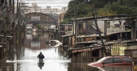 De acordo com o mesmo boletim, das 2,3 milhões de pessoas afetadas pelo desastre climático, o que corresponde a quase 20% da população do Rio Grande do Sul, 63.918 estão em abrigos improvisados em escolas, ginásios e igrejas e outras 581.613 em casas de parentes ou amigos.