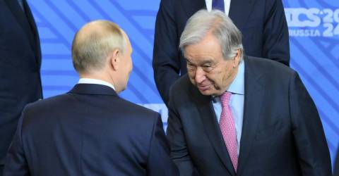 “Precisamos de paz na Ucrânia. Uma paz justa, em conformidade com a Carta das Nações Unidas, o direito internacional e as resoluções da Assembleia-Geral da ONU”, disse Guterres durante o seu discurso na cimeira do bloco originalmente formado por Brasil, Rússia, índia, China e África do Sul e entretanto alargado a mais países.