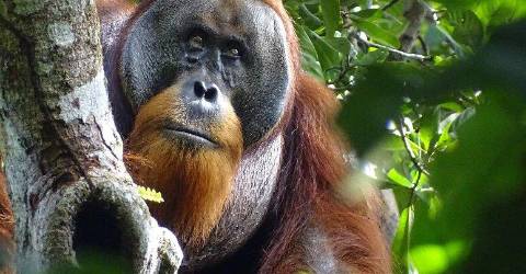 Rakus, um orangotango de Sumatra macho (Pongo abelii) que sofreu um ferimento debaixo de um olho, aplicou a si próprio uma planta com conhecidas propriedades medicinais, comportamento observado pela primeira vez num animal selvagem.
