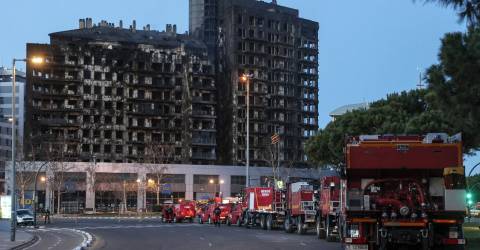 O trabalho dos bombeiros centra-se agora em continuar a arrefecer as fachadas dos edifícios, que estão a arder incontrolavelmente desde as 17:30 de quinta-feira (16:30 de quinta-feira em Lisboa), razão pela qual até agora não foi possível aceder ao interior dos edifícios. localizado no bairro Campanar, no noroeste desta cidade espanhola.