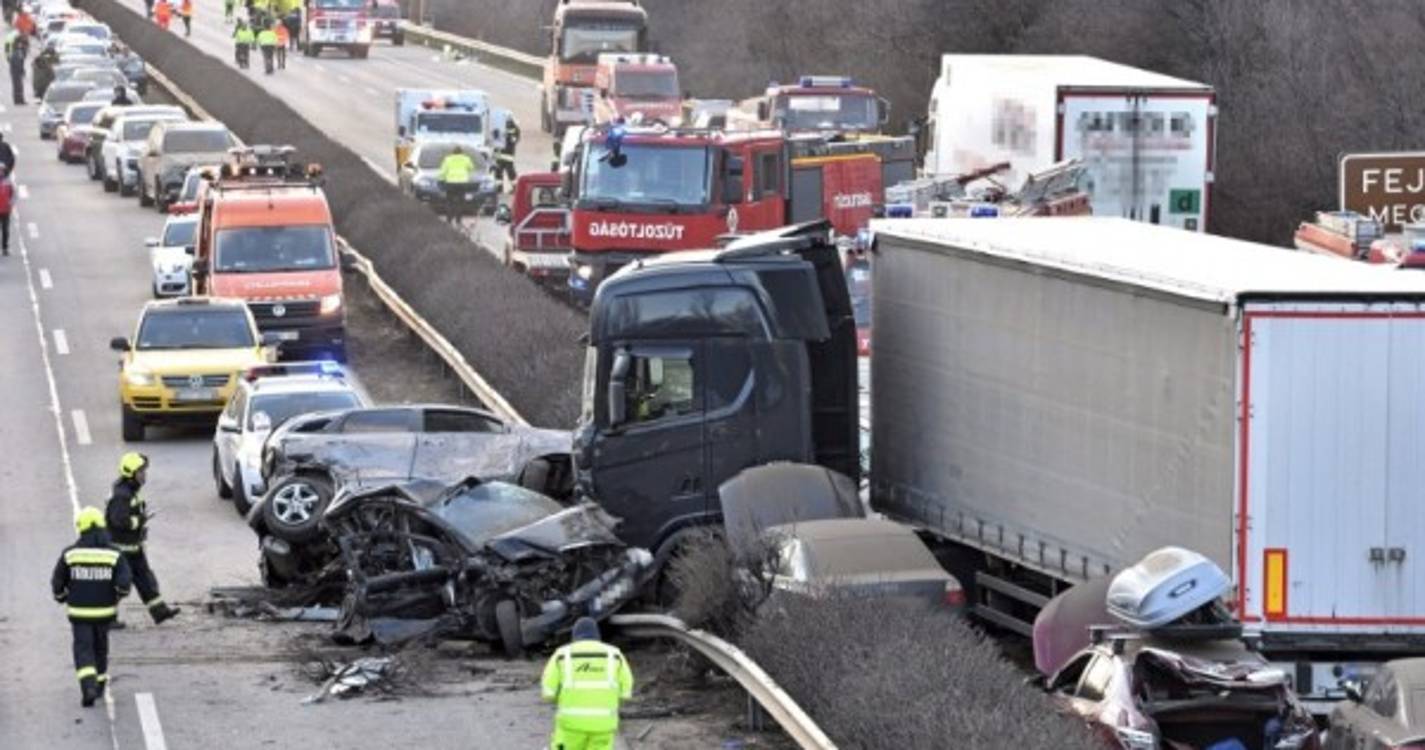 Dos cerca de 40 veículos envolvidos na colisão na via M1, a oeste de Budapeste, 19 incendiaram-se, adiantaram as autoridades policiais citadas pela agência Associated Press.